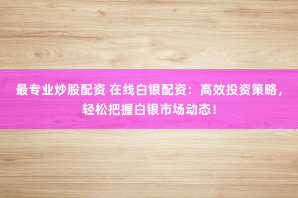 最专业炒股配资 在线白银配资:高效投资策略,轻松把握白银市场动态!